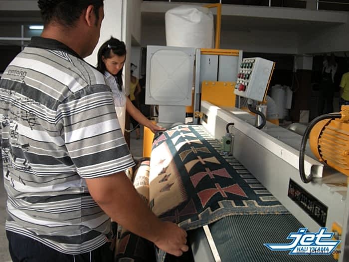 Tamamen kuruyan halılarınız tüy alma ünitesinde özel vakumlama ve fırçalama tekniği ile kabartılarak tüylerinden arındırılır. Ardından halılarınız parfümlenerek ambalajlama aşamasına getirilir.